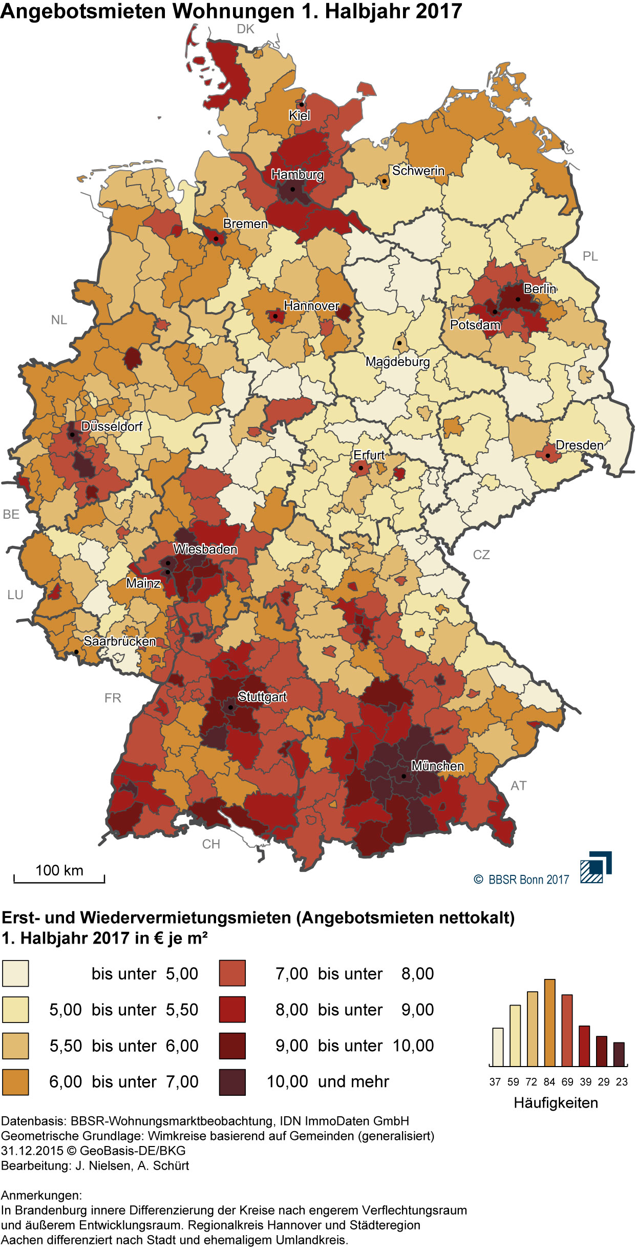 (1) Bundesinstitut für Bau-, Stadt- und Raumforschung (BBSR) – Wohnungsmieten steigen weiter