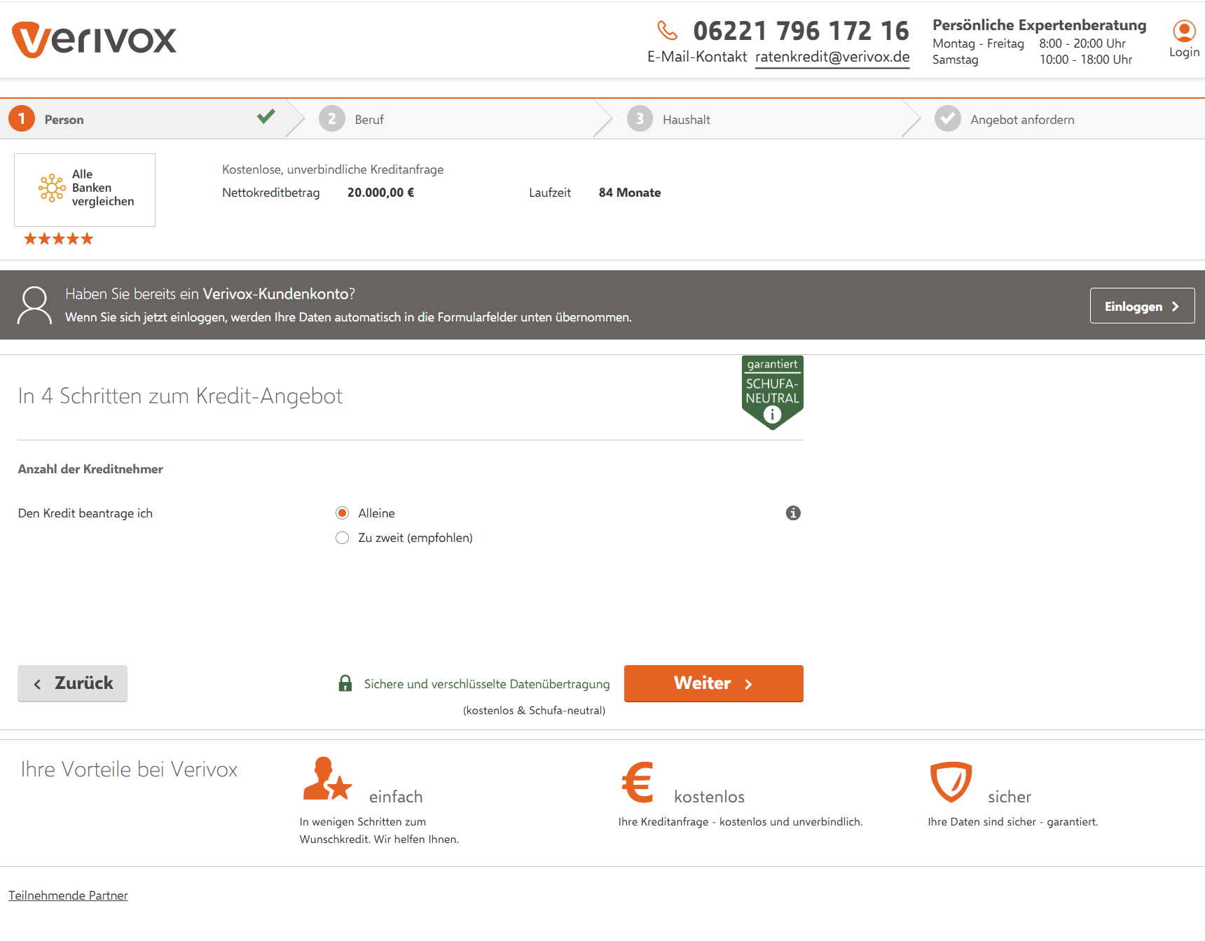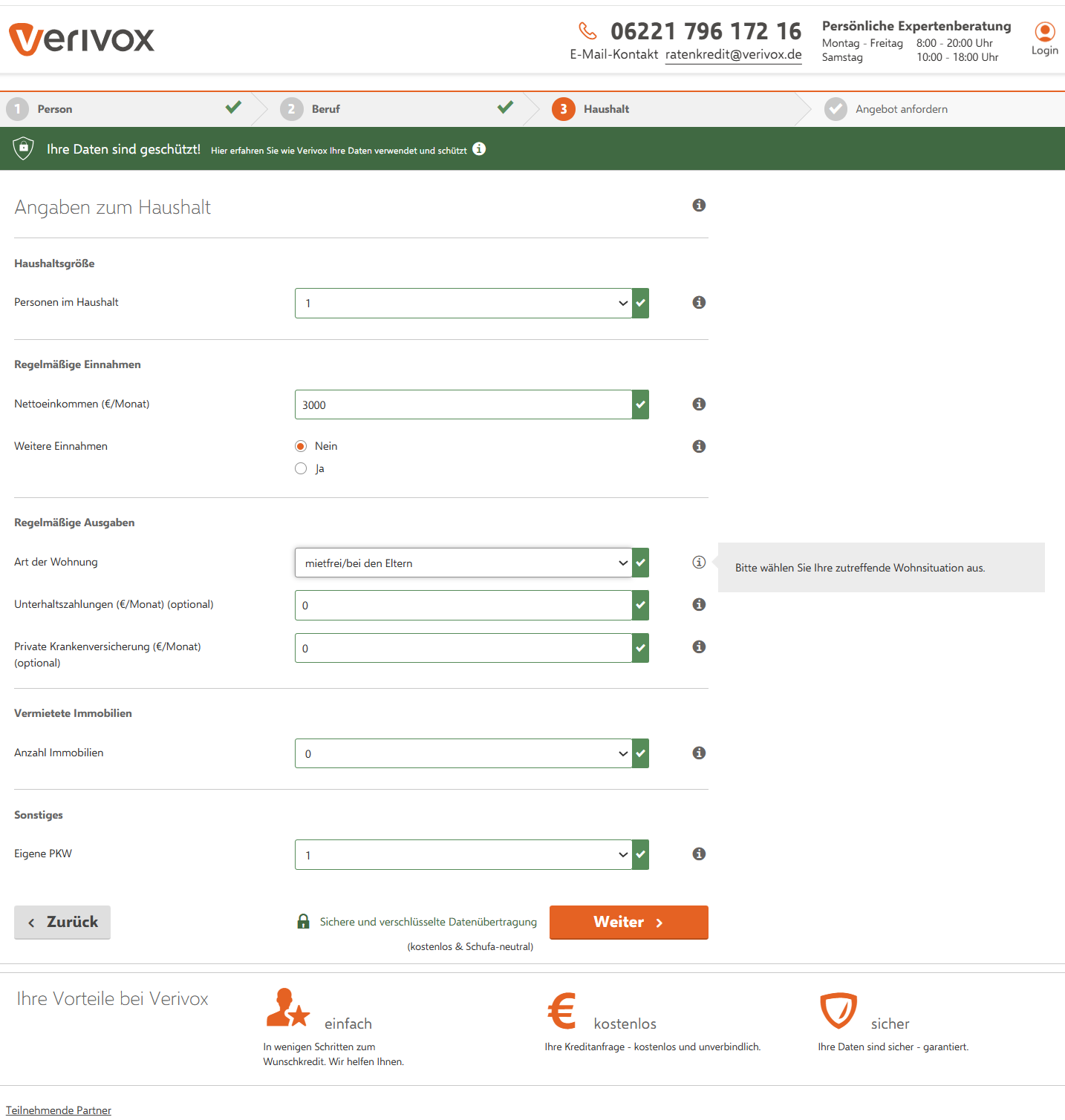 Den Verivox FAIRKREDIT kann beantragen, wer die folgenden Bedingungen erfüllt: